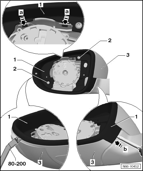 - Disengage the hooks - arrows a - with a screwdriver.