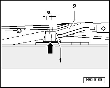 Marking - arrow - on upper part of rear guide - 1 - must be located on both sides between markings dimension - a - at slotted guide rail - 2 -.