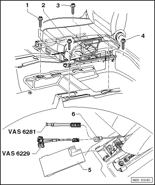 - Remove the airbag adapter (VAS 6229) or the airbag adapter (VAS 6281).