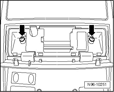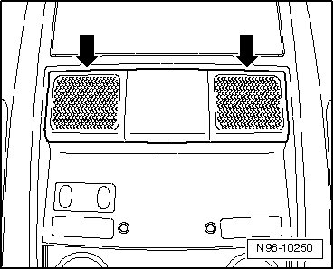 - Carefully pry panel out of interior lamp - arrows - using (VAS 3409) or a screwdriver.