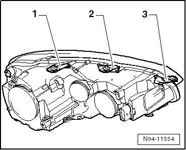 • There are two different repair sets, for the left and the right headlamp. Refer to the Electronic Parts Catalog (ETKA).