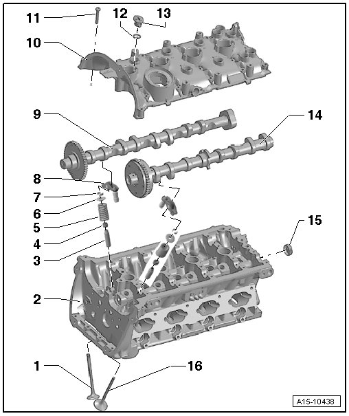 • Do not start the engine for approximately 30 minutes after installing the camshafts. The hydraulic equalization elements must seat themselves (otherwise the valves will crash into the pistons).