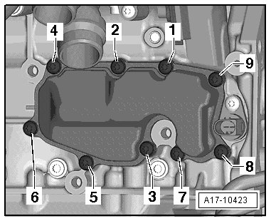 - Tighten the bolts in sequence - 1 through 9 - to 9 Nm.