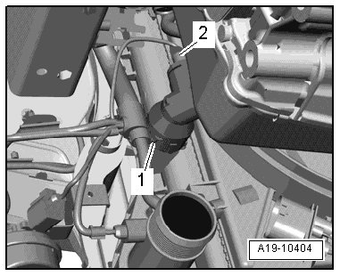 - Remove the lower coolant hose - 1 - from the radiator and allow the coolant to drain.