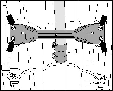 - Remove the front tunnel brace nuts - arrows - and brace.