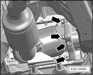 - Remove the exhaust system suspended mount bolts - arrows -.