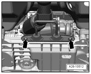 - From above, remove the front exhaust pipe to turbocharger nuts - arrows -.