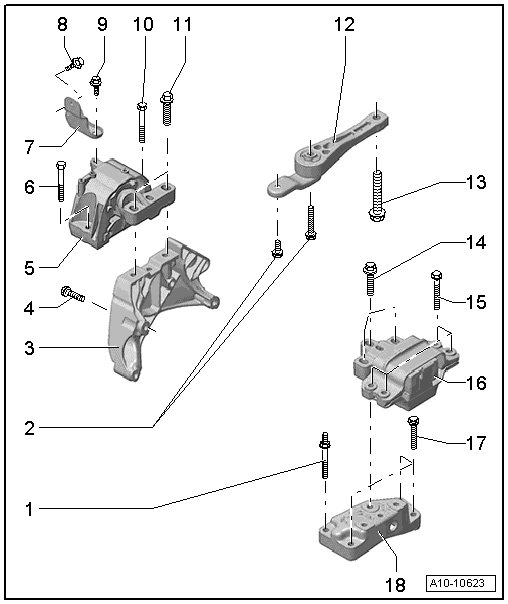 • First, secure the pendulum support to the transmission and then to the subframe.