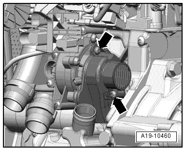 Tightening specifications, refer to => [ Coolant Pump and Thermostat Overview ] Coolant Pump and Thermostat Overview.