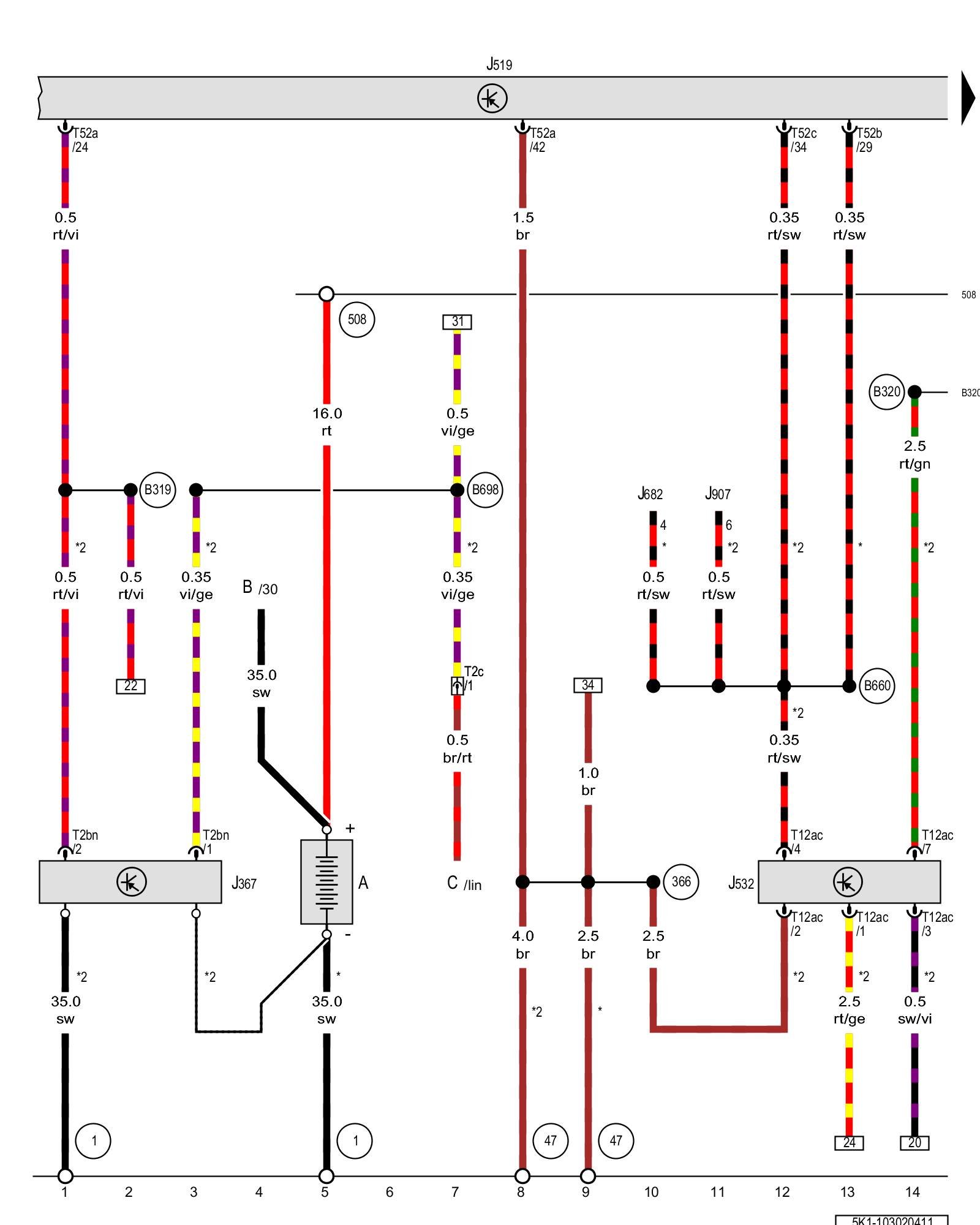 (B320) - Positive connection 6 (30a) (in main wiring harness)
