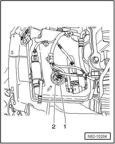 - Disconnect the connector - 1 - from the windshield washer fluid level sensor.