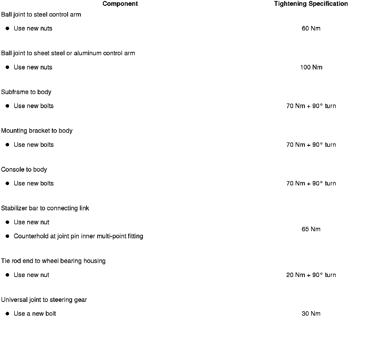 - Subframe, securing, refer to => [ Subframe and Consoles, Securing ] Front Suspension.