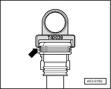 • To pull out the spark plugs, place the ignition coil puller (T40039) on the topmost thick rib - arrow - of the ignition coil with power output stage.