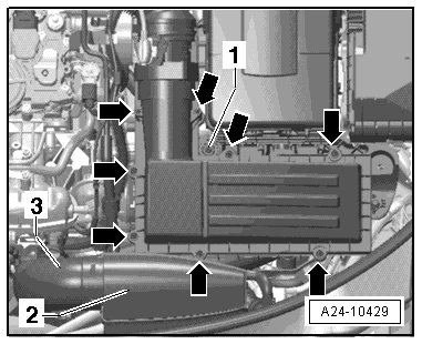 Tightening specifications, refer to => [ Air Filter Housing Overview ] Air Filter Housing Overview.