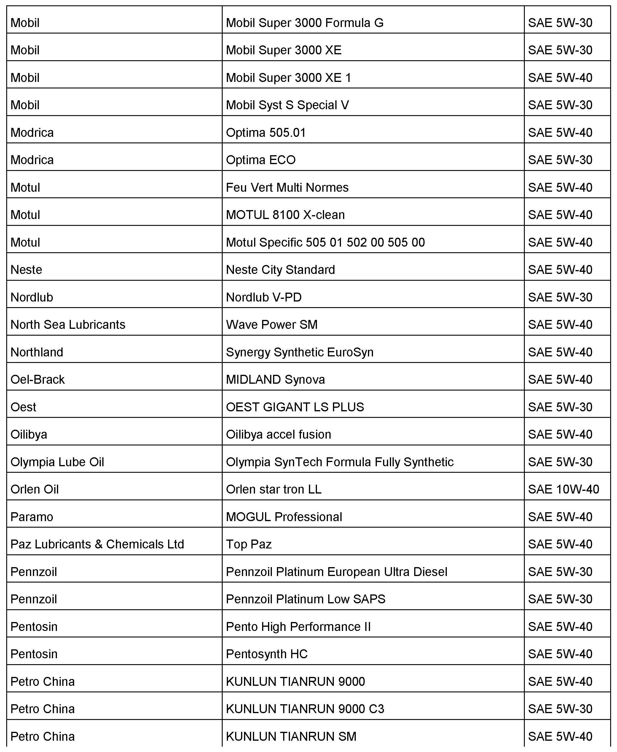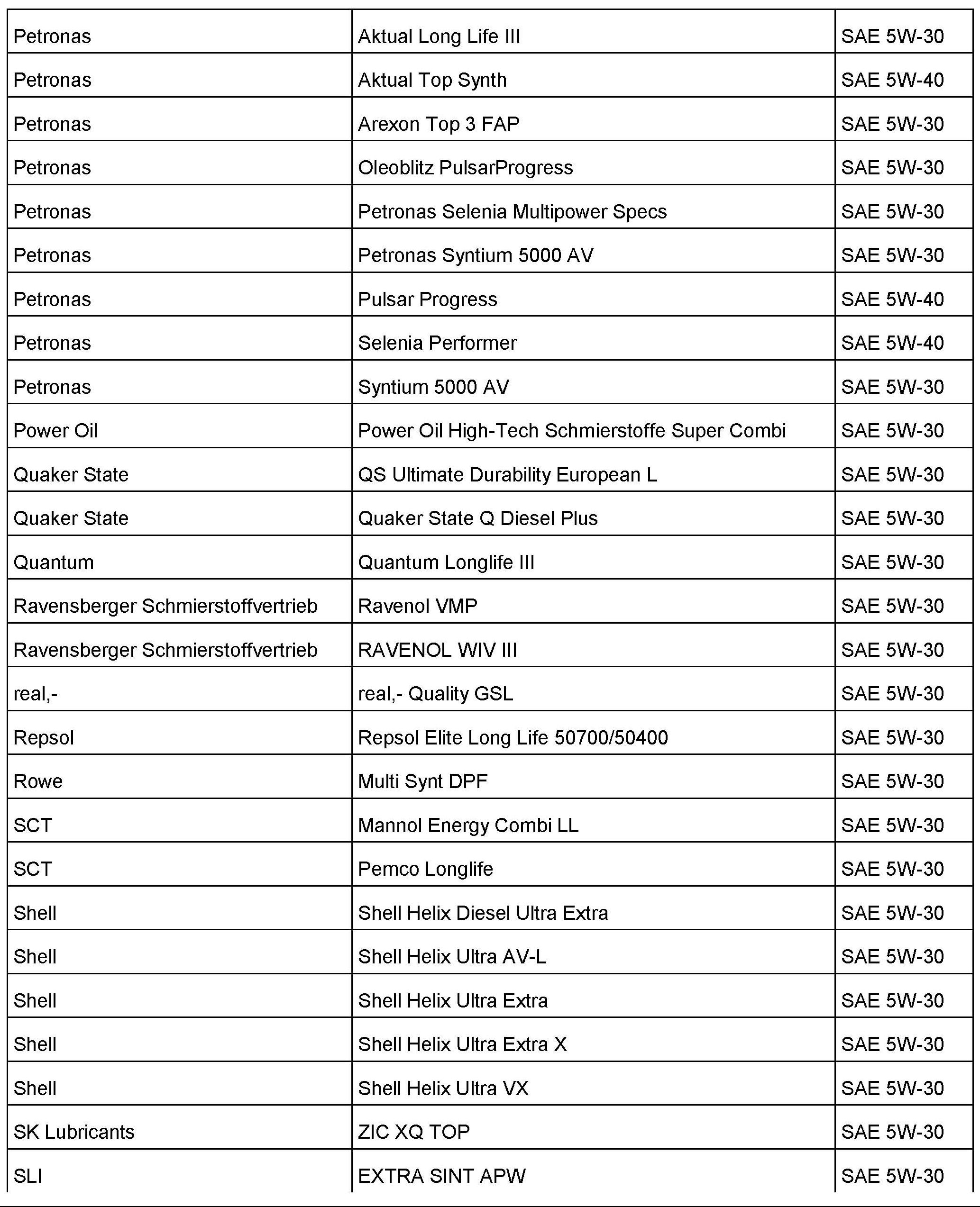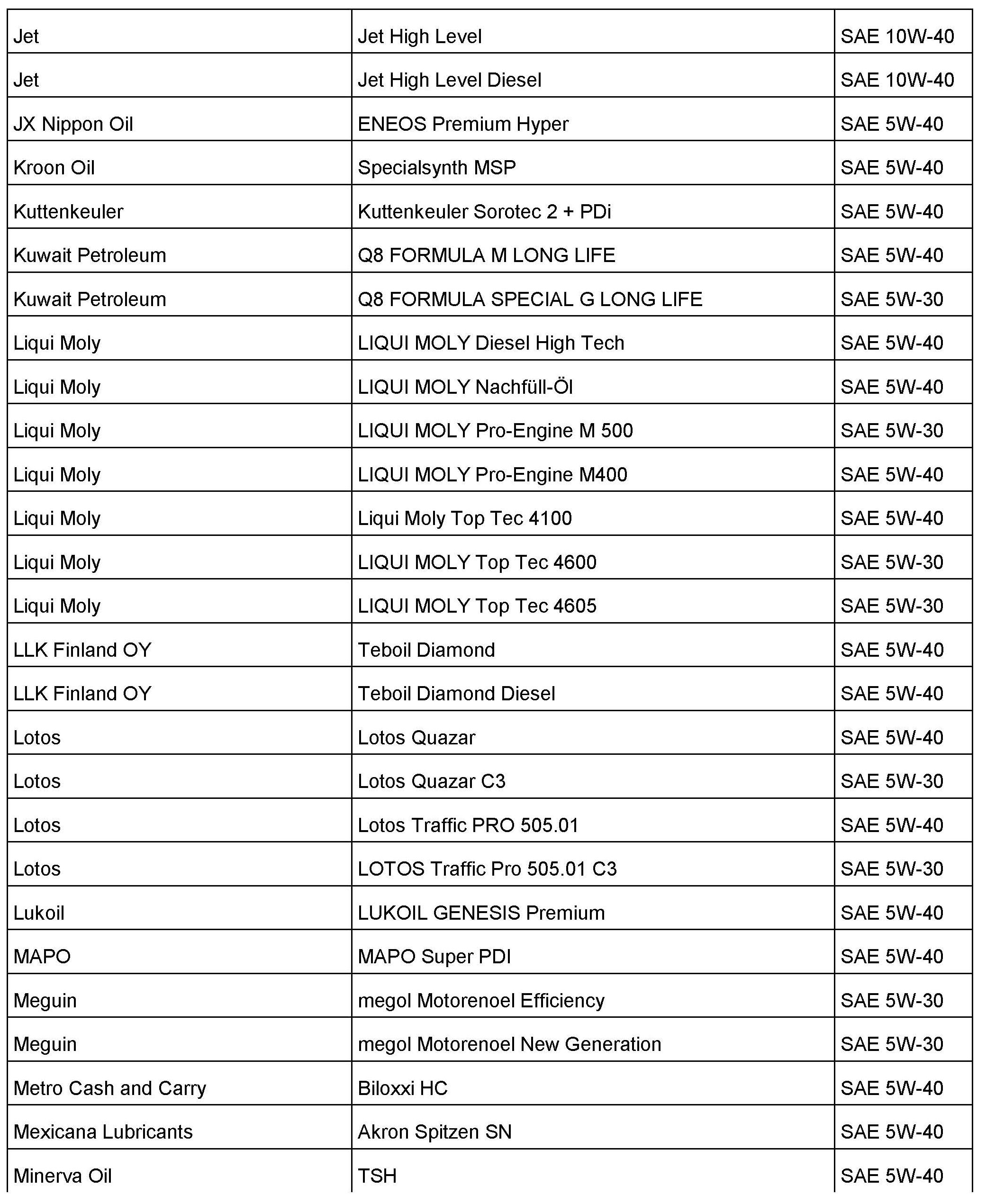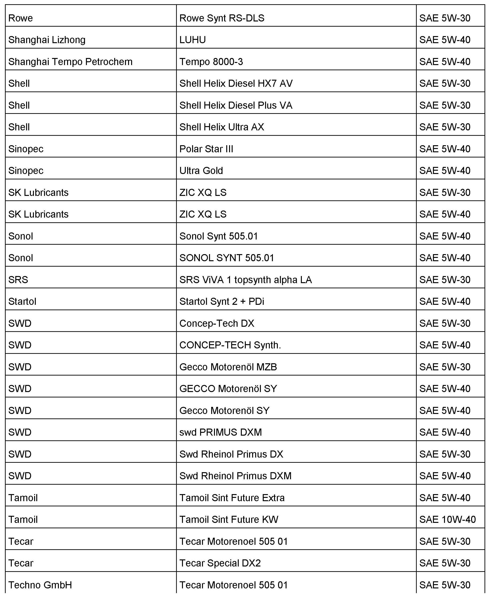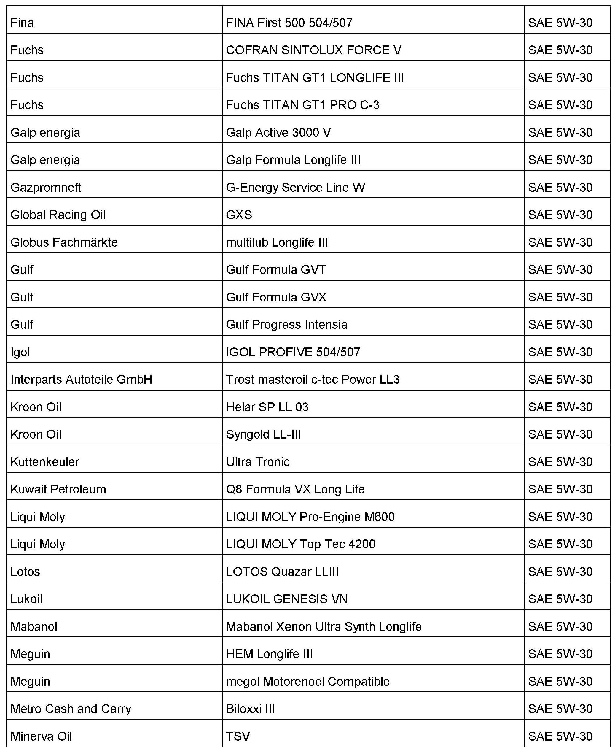 Attached is a "Worldwide" list of engine oils which currently meet Volkswagen Oil Quality Standard VW 502 00/505