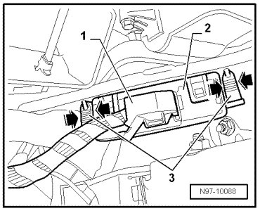 - Press the pins - 3 - together - arrows - and pull the data bus on board diagnostic interface through the holes.