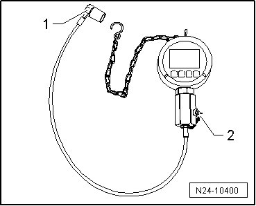 • If the pressure sensor tester (VAS 6394/1) does not display 0 bar, set it back to zero. Refer to the operating instructions.