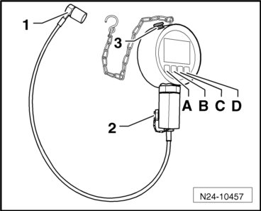 - Turn the pressure sensor tester (VAS 6394/1) on by pressing the button - A - briefly.
