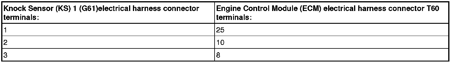 - Using a multimeter, Check the Knock Sensor electrical harness connector to the Engine Control Module (ECM) (J623) electrical harness connector T60 for an open circuit.