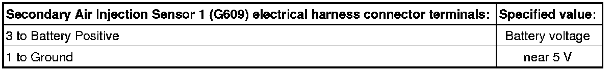 - Using a multimeter, check the Secondary Air Injection Sensor 1 (G609) electrical harness connector terminals for voltage.