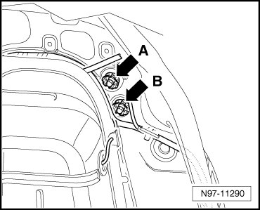 (50) - Ground connection inside the luggage compartment on the left side -arrow B-
