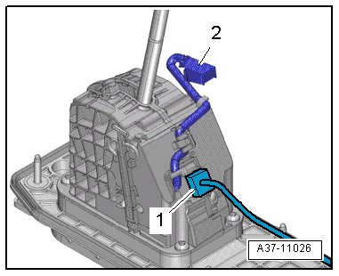 - Disconnect the connector - 1 - from the selector mechanism to the vehicle wiring harness.