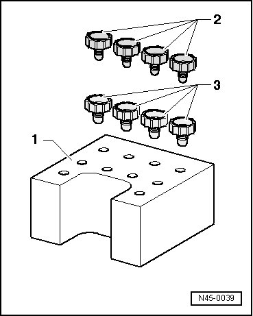 - Seal off the brake lines and the threaded holes right away with the plugs from the repair kit 1H0 698 311 A.