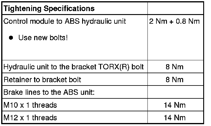 - Install the hydraulic unit and control module with the new inner TORX(R) bolts diagonally according to the tightening specification.