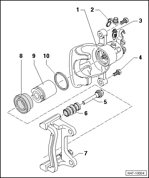 • Removing and installing, refer to => [ Rear Brake Caliper Piston, C38 an CII 41 ] Rear Brake Caliper Piston, C38 an CII 41.