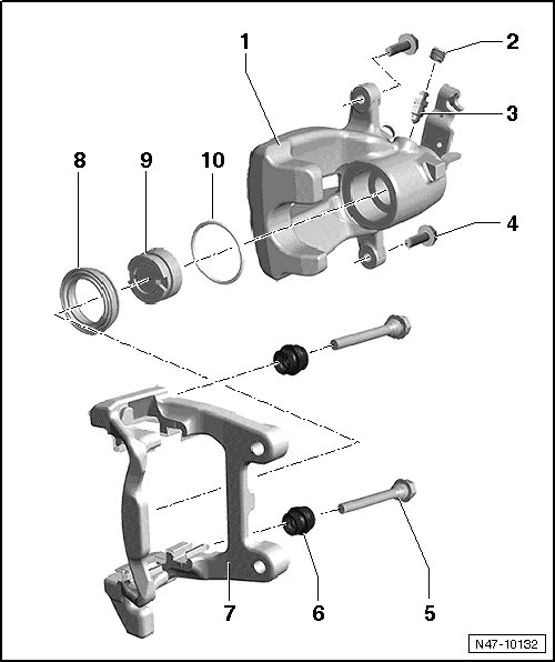 • Removing and installing, refer to => [ Rear Brake Caliper Piston, C38 an CII 41 ] Rear Brake Caliper Piston, C38 an CII 41.