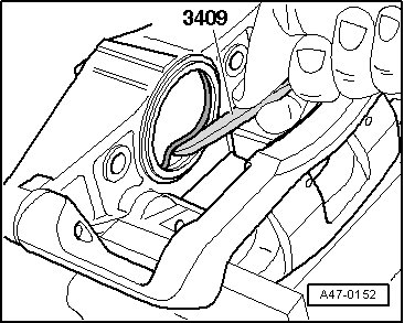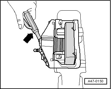 - Press the piston into the brake caliper by hand. Possibly push back slightly using the piston resetting tool (T 10145).