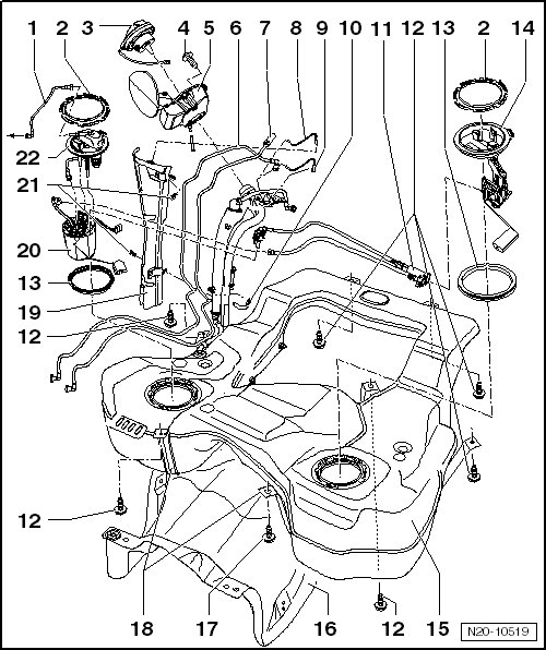 19 - Fuel Pump Control Module -J538- with Fuel level sensor -G- and Transfer fuel pump -G6-