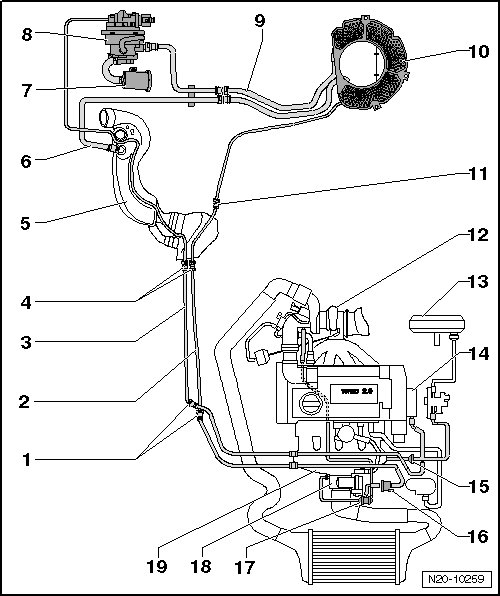 • Hose clip pliers (VAS 6340) or (VAS 6362) are recommended for installing space saving clamps.