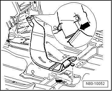- When installing the rear channel, first slide it onto the heater - arrow - and then clip it into the floor panel.
