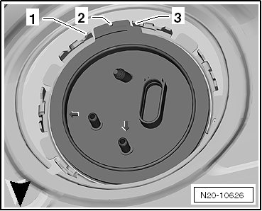 • The tab - 2 - on the flange must lie between tabs - 1 and 3 - on the fuel tank.