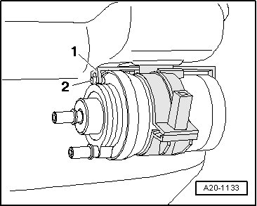 The pin - 2 - on the filter housing must engage in the recess in the filter bracket - 1 -.