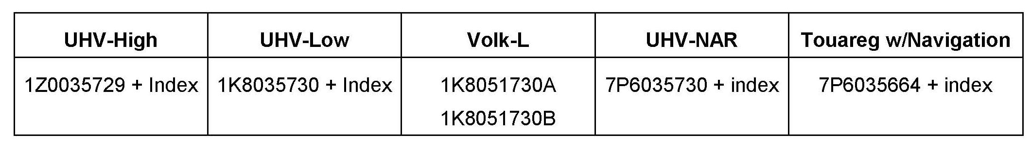 ^ UHV-Low (9W2) Factory Option (2009-2010 All except Routan/NB/NBC)