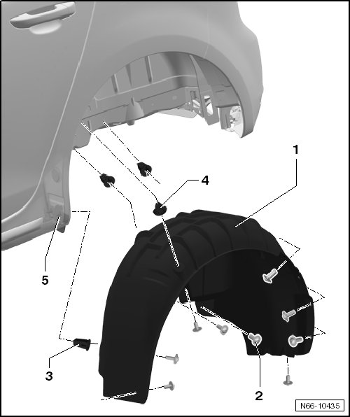 - Remove the back part of the wheel housing liner - 1 - from the wheel housing.