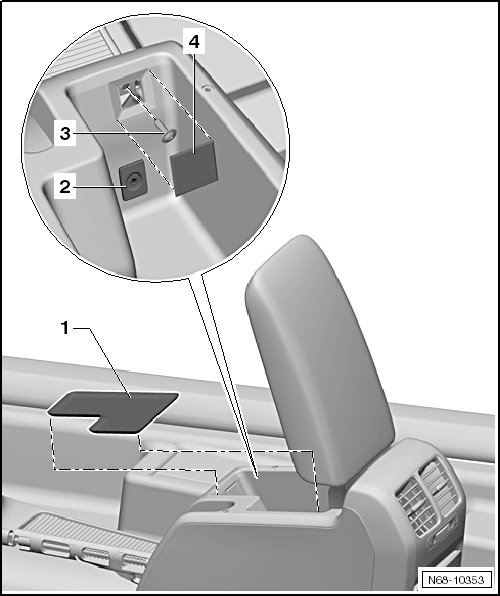 - Remove the ashtray - 1 - from center console and (depending on vehicle equipment) disconnect the wiring harnesses.