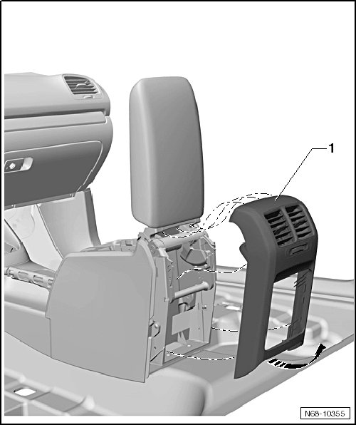 - Remove the cover on the center console - 1 - - in direction of arrow -.