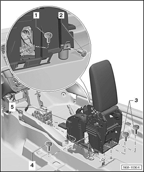 - Open beverage holder - 1 - and remove two bolts - 2 - (1.5 Nm).
