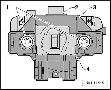- Drill out the shear bolts - 1 - on the electronic steering column lock control module (J764) - 4 -.