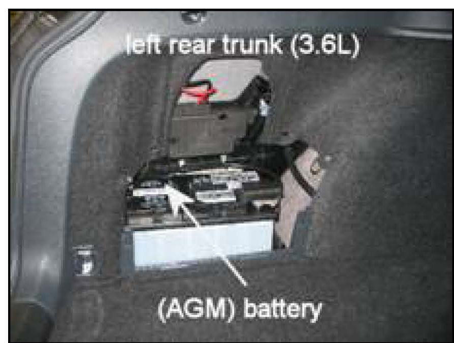 ^ Select Lead Acid Battery for 3.6L engine (located in left side of trunk). 450 DIN.