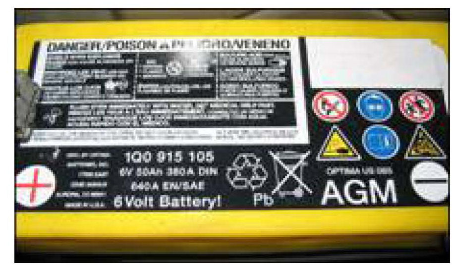Eos 3.2L engine is equipped with two 6-volt AGM batteries which are connected in series to achieve 12-volts. The battery system must always be treated as a 12-volt battery system. Never attempt to charge only one 6-volt battery. If battery replacement is necessary, never replace one 6-volt battery; both batteries must be replaced as a pair!