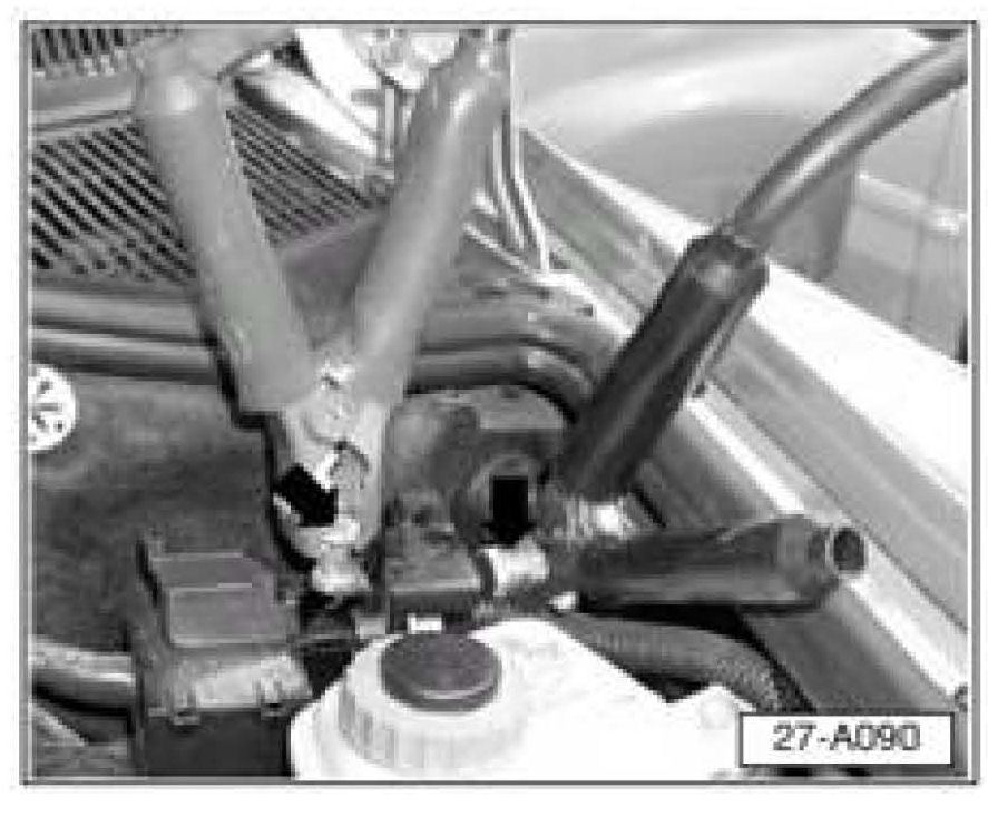 ^ Connect cable (Part No: 1Q0971226) to inner battery terminals.