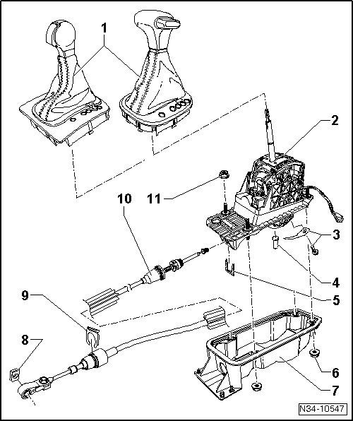 • The Selector Lever Sensor System Control Module -J587- , Shift Lock Solenoid -N110- and Selector Lever Park Position Lock Switch -F319- are located at the selector lever and selector mechanism