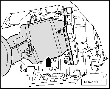 - Release the clamps - arrows 1 and 2 -, remove the hose and remove the charge air pipe from the engine.