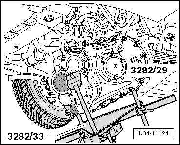 - Install the transmission support (3282) to the engine-/gearbox jack (V.A.G 1383 A).