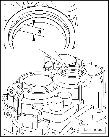 - Heat transmission housing using a heat gun (V.A.G 1416) or equivalent, in the area of the bearing seat for the grooved ball bearing/input shaft to 100 °C (212 °F) for approximately 10 minutes.