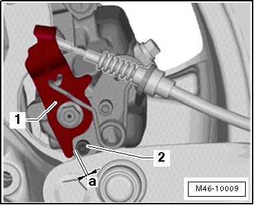 - The distance - a - to the stop - 2 - on the left and right brake caliper must not exceed 1.5 mm together.